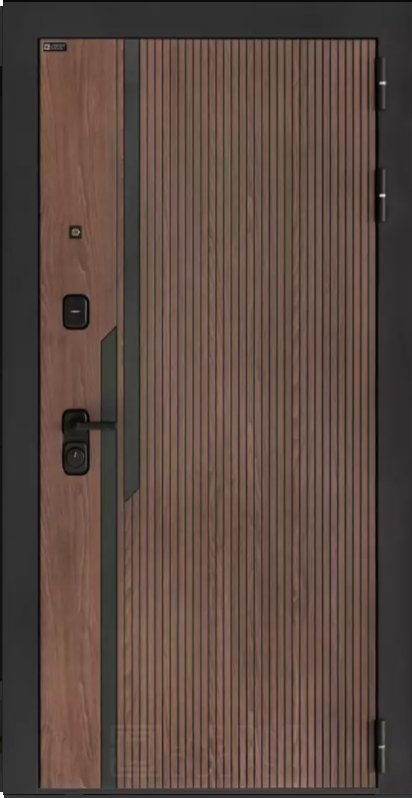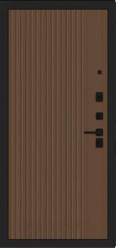 Фурнитура TOR черная: Броненакладка врезная, сувальдные накладки, глазок сбоку (врезан), дверная ручка, ночная задвижка. Цилиндр ключ-вертушка (производитель не регламентируется),